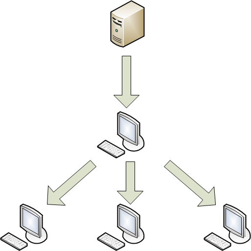 - One of the computers on the network receives the Kaspersky Endpoint Security update package from Kaspersky update servers or a different update source. The retrieved updates are placed in a shared local folder.